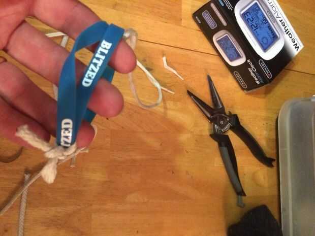 Obtener un conjunto de cordones. Cualquier. Ahora a ver si se puede hacer alrededor de su poder. Si tan grande. Si no a unir los dos. también tendrás una buena banda de caucho gruesa. verás que utiliza dos bandas de muñeca de goma. (Que son mucho mejores que rubbernands.