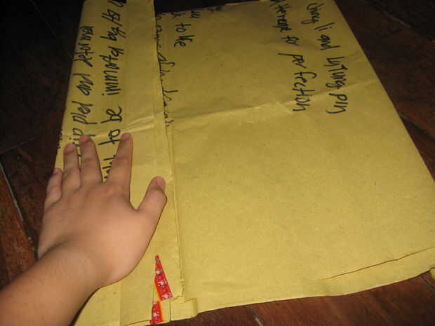 Abrirlo pero no Desdoble las solapas. Luego doblar la parte superior e inferior en el centro del papel