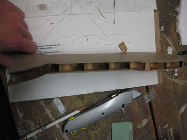 Ahora, con el revestimiento exterior de hecho, debe hacer la papelera como un r2 pasable. Pero hay algunas cosas que faltan... como sus piernas. Para éstos, simplemente dibujaba el patrón básico de la pierna y corte de cartón grueso pulgadas pesado. (Nota al cartón de corte que tiene grandes espacios vacíos, es necesario asegurarse de que usted está cortando hacia arriba y hacia abajo y no en ángulo. Esto te dejará con un agradable borde plano.