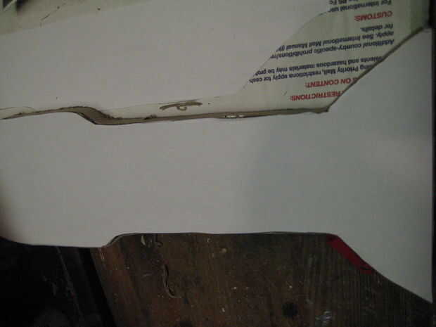 Ahora que se terminan las piernas, probablemente te darás cuenta el hecho de que los bordes tienen orificios por donde las diferencias son en el cartón (ver foto) lo que hice por ellos, es que tomó el ancho de la pierna y tiras de cartulina gruesa de 2mm para cubrirlo. Tomar cola y agua, mojar cada tira de abajo, entonces había doblado a los contornos de la cartulina, dándole el aspecto de una pieza sólida, moldeado. mientras la cartulina estaba en lugar, me pegué abajo y esperó a que se seque.