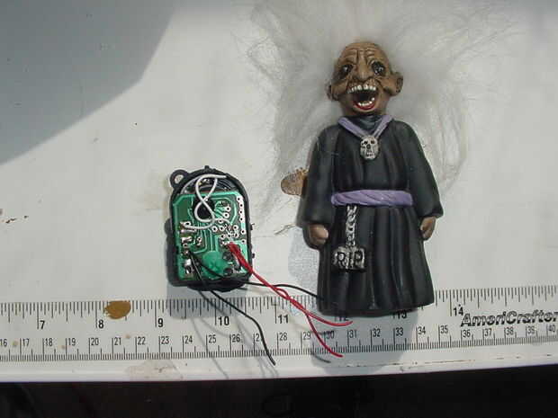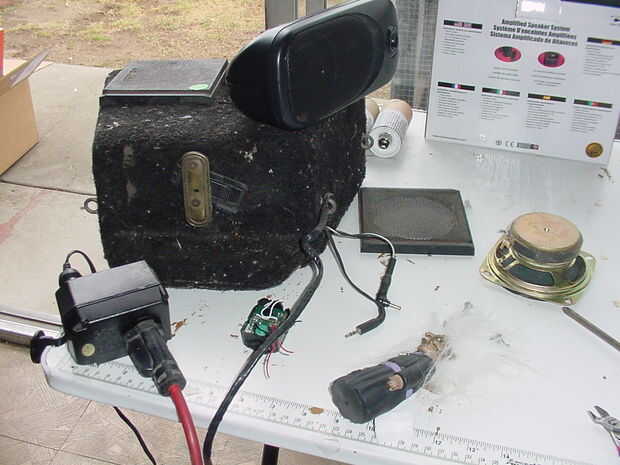 Coloqué la caja de sonidos de la bruja dentro de una caja metálica y había conectado la salida de altavoz en el primer refuerzo. Lo que tomó las primera aumentadores de presión de salida y había conectado en la segunda entrada de aumentadores de presión. Salida de refuerzo segundo entonces fue conectado a una bocina de 3way de Radio Shack. Aumentadores de presión fueron accionados por una fuente de alimentación de 12VDC. (Sí, altavoces para ordenador habría sido la decisión correcta, pero entonces todavía tengo todos eso Redneck basura tirada por ahí).