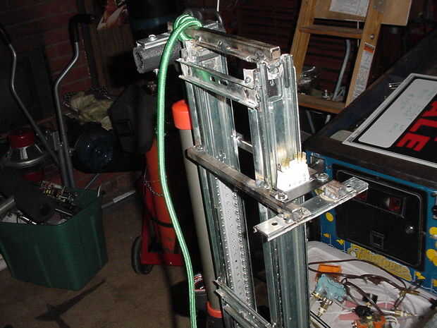 Alambré los interruptores en serie, para que ambos interruptores deben contactarse antes de que se genera una salida. Esto asegura que la Asamblea Deslice Vertical se ha extendido completamente antes de que ocurra el próximo evento. La menor flecha apunta hacia fuera del interruptor de inclinación. El interruptor de inclinación enciende a pleno rendimiento, enviando energía al futuro hombro aire cañón.