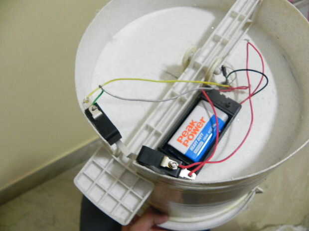 - Pase los cables a través de un agujero en el bote de basura en el Arduino dentro el bote de basura.