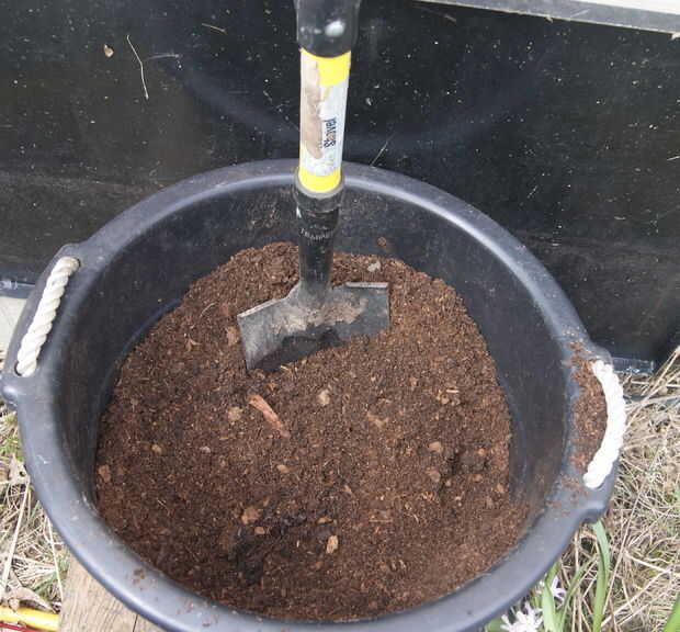 • pala corta de mezcla de suelo y relleno el bote (se puede utilizar una paleta, pero tardará más tiempo)