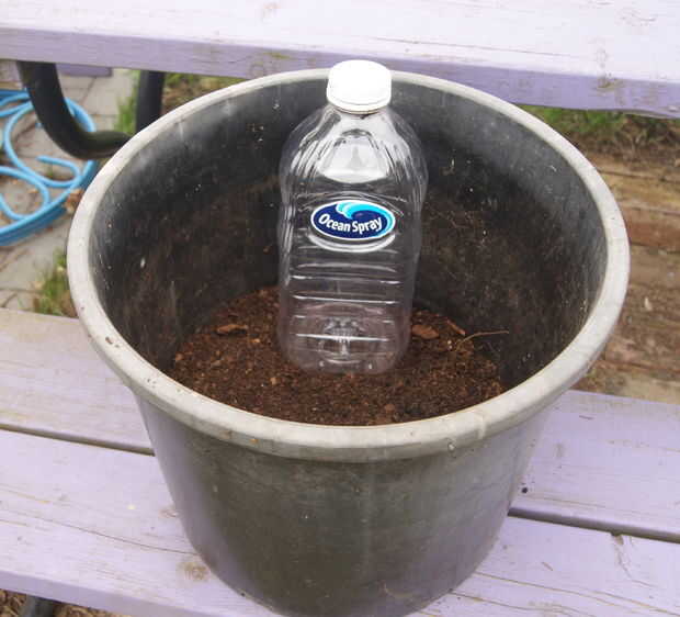 Añadir suficiente cantidad de la mezcla de suelo a la maceta que la tapa de la botella estará en o ligeramente por encima del borde de la olla.