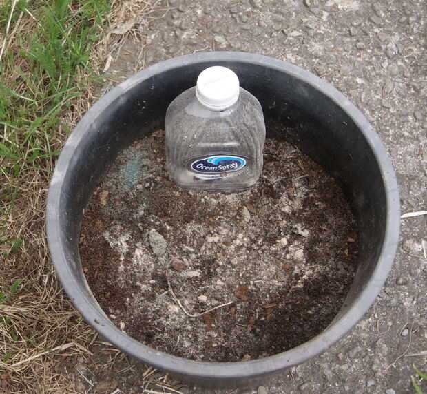 Llene la olla a medio camino encima de la botella con la mezcla de suelo.