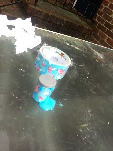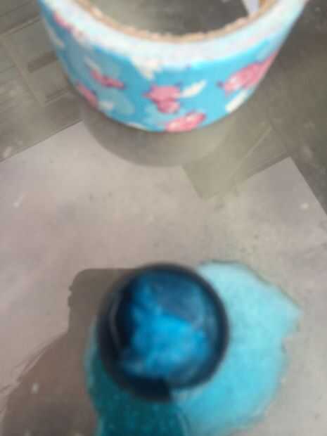 Después sacúdelo Haz espuma azul. Esto es lo que parece en el exterior cuando es espuma e interior después de que se termine. Te recomiendo tener algunos amigos más y hacer muchos a la vez. Puede probar con envases más grandes y mezclar las proporciones de agua y polvo de hornear.