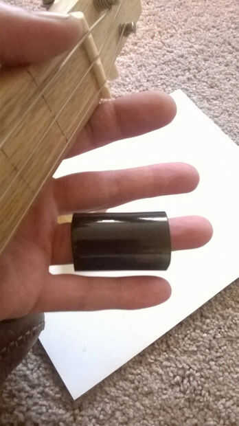 Había estado utilizando una longitud de tubo de cobre de la diapositiva, que clase de "agarra" las cuerdas de acero con que me gusta jugar. Los rasguños obvio sobre el cobre me dejan saber que las cuerdas están realmente cortando en la diapositiva de cobre. Me gusta mucho cómo suena este uno, y tiene mucho menos "zumbido" cuando lo deslice.