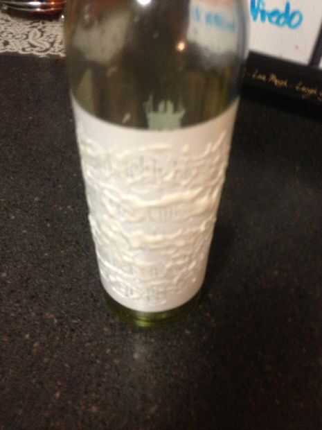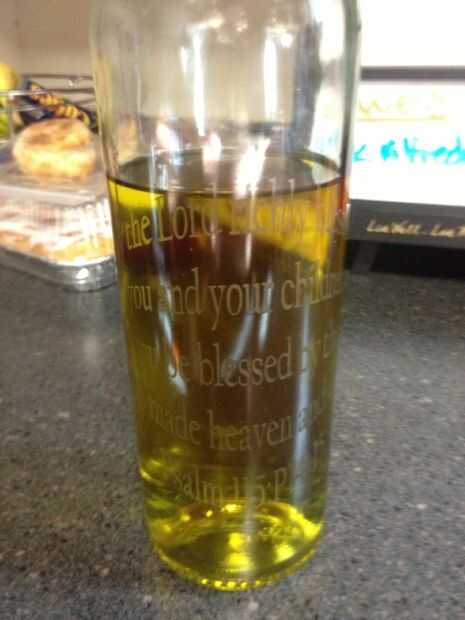 Agarré una botella de vino viejo y limpiar todas las etiquetas. Poner el tapón en la botella y en ese momento todavía necesitaba algo. Leí un artículo sobre el uso de pasta de grabado en vidrio. Llamé a enviado un correo electrónico a Fastsigns en Denton TX y me habían cortado algunas plantillas de vinilo. Fue una experiencia de servicio de cliente grande; Yo sólo los utilizará de ahora en adelante. Apliqué el vinilo a la botella y aplica la pasta de grabado. Hice dos capas para asegurar una cobertura adecuada. La próxima vez voy a usar una letra más grande era bastante difícil de eliminar las pequeñas piezas de vinilo.