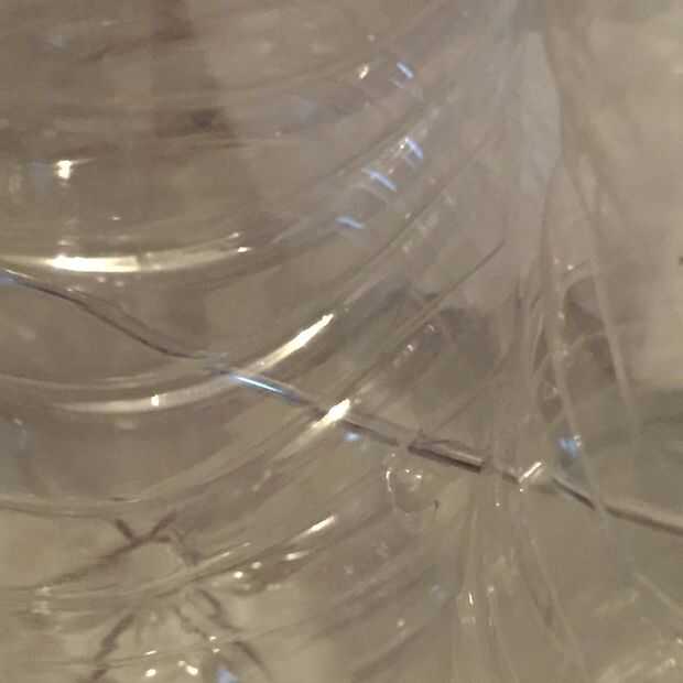 Empujar los agujeros en los lados opuestos de cada botella de agua, a continuación, cuerdas de alambre a través de