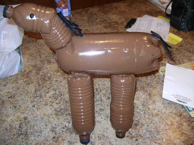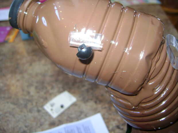 Ahora es el momento para poner los ojos. Ahora mi primera opción era los ojos del meneo pero tuve que conformarme con botones. Cuando vayas a poner los ojos en no utilice pegamento caliente, utilizar pegamento de elmer regular o puede utilizar pegamento. Fui por delante y pegar con cinta adhesiva mina. Ahora tienes tu caballo propio botella de agua. Disfrutar.