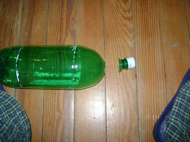 Corte la parte superior de la botella de 2 litros. Tenga cuidado para no cortarse.