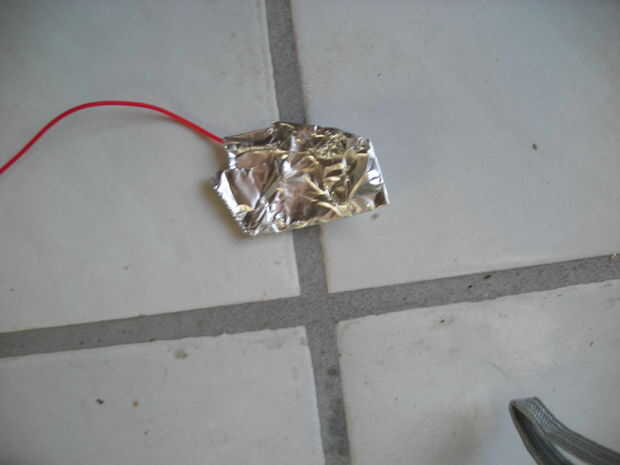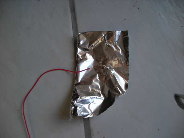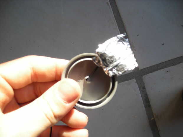Necesita envolver el extremo de los cables en el papel de aluminio luego fijarlos en el cartucho de película. Mantener doblando el papel de aluminio alrededor del alambre hasta que cabe en el envase de película. Deje suficiente espacio para la batería también a ir dentro de la lata.