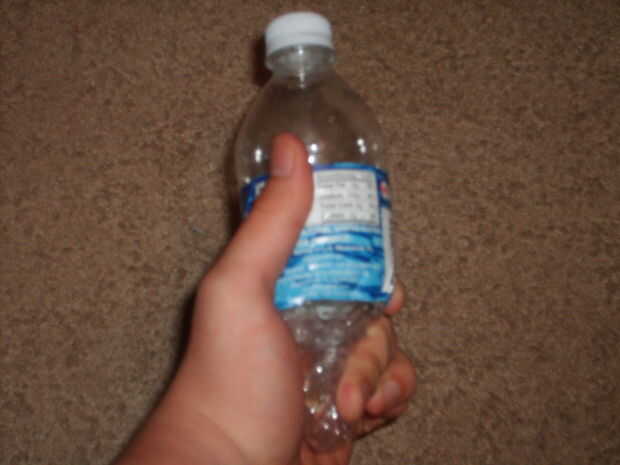 Que esta arma de fuego correctamente se necesita presión de aire acumulada en la mitad superior de la botella. para crear esta presión, asegúrese de que la tapa se atornilla firmemente; luego tomar la parte inferior de la mitad de la botella y torcerlo y trate de sacar todo el aire. Compruebe su botella con la imagen de abajo. (fue muy difícil tomar una foto mientras gira la botella al mismo tiempo, su arma será mucho más funcional y más potente si usas 2 manos para girar la botella).