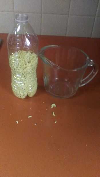 Paso 5: Verter los tallarines en la botella de agua