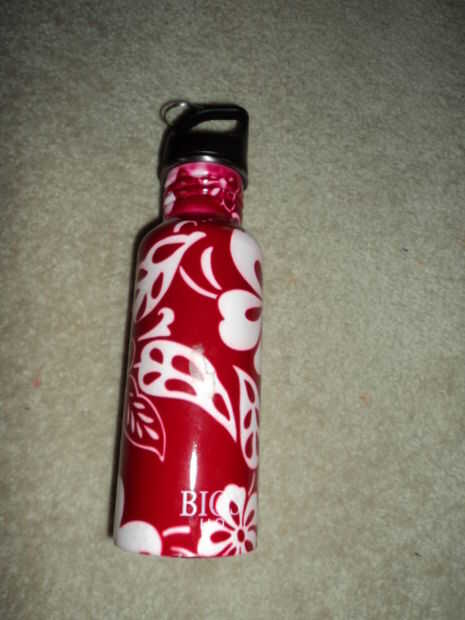 Una botella de agua con una tapa suelta, preferentemente un tipo de metal con un cuello ancho.