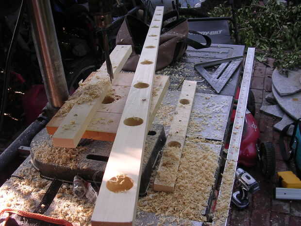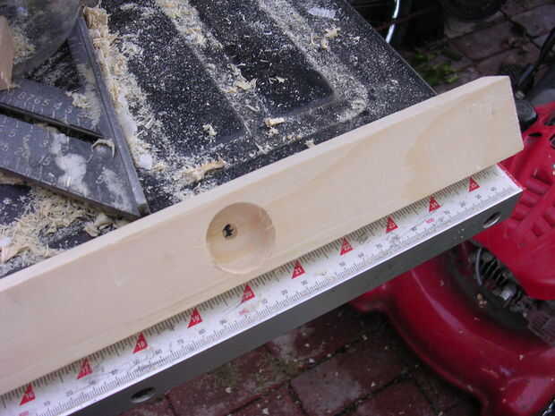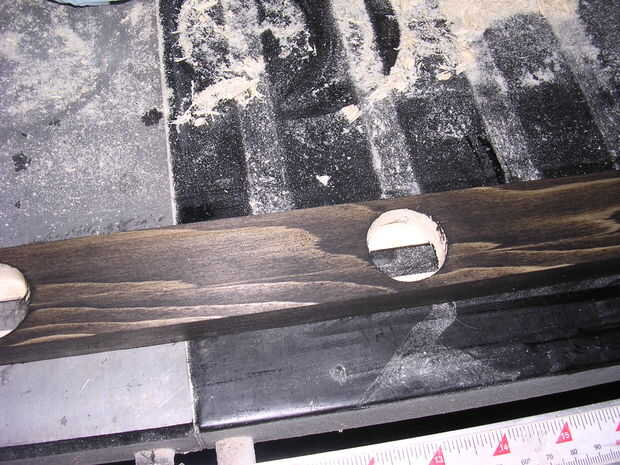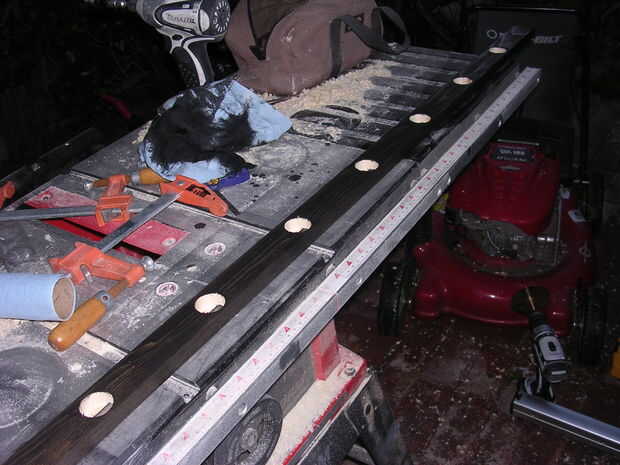 En este paso vas a perforar los agujeros lo suficientemente grandes como para caber firmemente la tapa de la botella. No sé qué taladro del tamaño a utilizar, ya que afeitó apagado ambas partes de una broca de paleta para obtener el tamaño deseado. Todas las 10 luces son 9 pulgadas aparte y se perforaron todos los agujeros de 5/8" de profundidad. En el otro lado quiere alesaje de canal para cables y electrónica. Arena lo, lo de la mancha, que se vea bien.