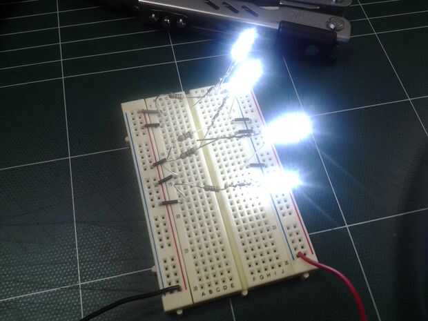 No entrar en grandes detalles sobre cómo hacer un circuito de LED (se puede ver un ejemplo que hice aquí), pero debe ir sin decir que debe probar su diseño primero antes tratando de poner todo junto. Aún así, se pueden hacer errores (* puntos del dedo en sí mismo...)