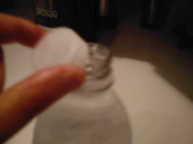 primero quite la tapa de la botella. por favor, no cuela tu cerebro en este caso.