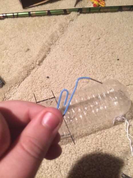 Primero consigues un pice de cadena (usé uno del interior filamentos de cable 550) u un extremo de la cuerda del tornillo en la tapa y luego atar un resbalón no en el otro a continuación tomar un clip de papel y doblarla como yo lo hice