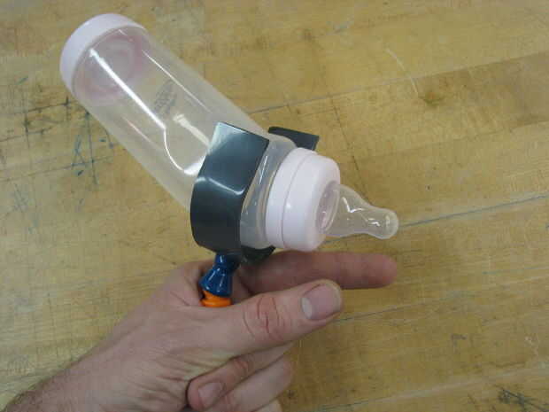 La unidad para sostener la botella mientras que la alimentación con biberón se crean específicamente para las madres que tienen niños con síndrome de Down. Los niños con síndrome de Down a menudo épocas tienen un tomo muscular bajo en la cara y por lo tanto no pueden aplicar aspiración a bootle para alimentar. Las madres deben utilizar su dedo pulgar, dedo índice y a veces su dedo medio para ajustar la mandíbula del bebé para que la succión correcta puede ser aplicada para que puedan alimentar. Sosteniendo al niño y a la cara del niño dificulta sostener la botella y alimentar al bebé. Sosteniendo al niño y a la cara del niño dificulta sostener la botella y alimentar al bebé. Con las dos manos ocupadas durante la alimentación de las madres han tenido que recurrir a balancear la botella de alimentación a mano.