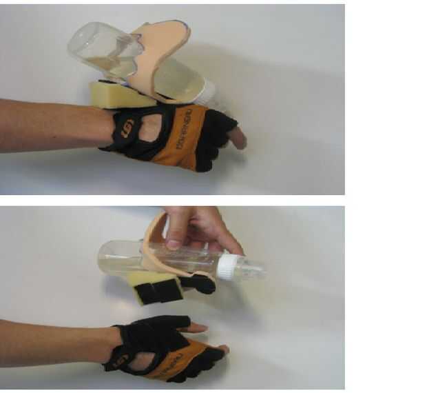 1. bicicleta guante con Velcro superglued a la zona del dedo pulgar-índice del guante.