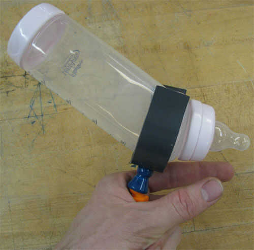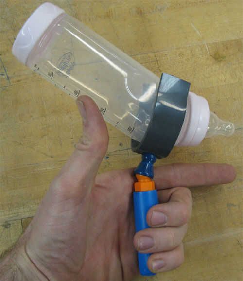 Incorporan una empuñadura personalizada para dígitos 3, 4 y 5, un empalme de pivote, y C-soporte a utilizaron la fuerza de prensión de la mano entera mientras mantiene la botella firmemente y proporcionar posicionamiento ajustable de la botella.