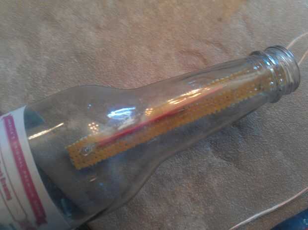 este proyecto está basado en fresco de luz de Scooter76 nocturna.Además de la botella que bastante tiempo puesto que estaba tratando de tener cuidado de no romperlo de la perforación, la parte del circuito de este proyecto sólo tomó unos 20 minutos.