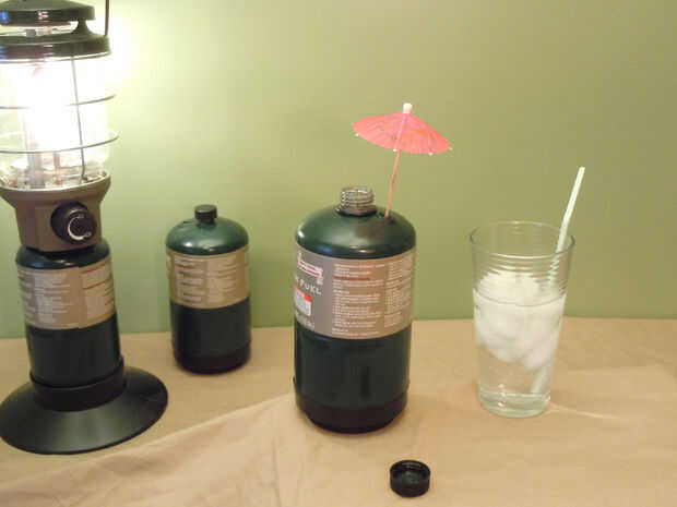 Perfecto para el amante de la naturaleza experimentado. Llene con una bebida favorita y parecen beber desde el tanque de propano.