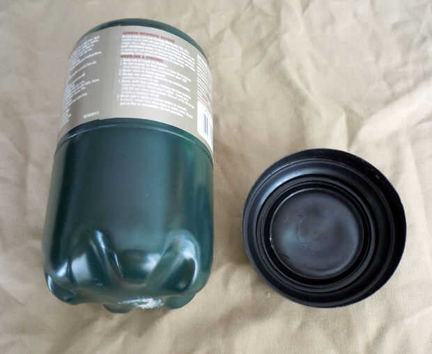 Quitar el plástico tapa inferior. Esta tapa se sujeta con un pequeño toque de pegamento caliente. Si el tanque está frío, el pegamento llega a ser frágil y permitirá que la tapa de pop off fácilmente. Los tanques utilizados aquí, quedaron al margen este invierno así que no había ningún problema en quitar sin daño.