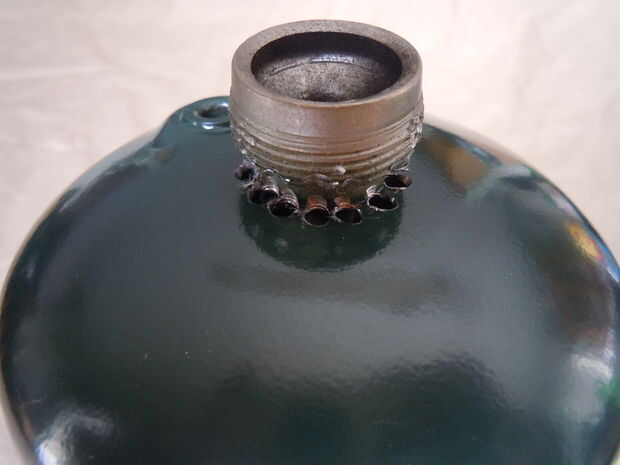 Agujeros son perforados bajo el sencillo de los hilos de conexión (derecha fueron cuello de conexión cumple con el depósito). Esto asegura que el total resultante Agujero superior del tanque no es demasiado grande para la botella de plástico.