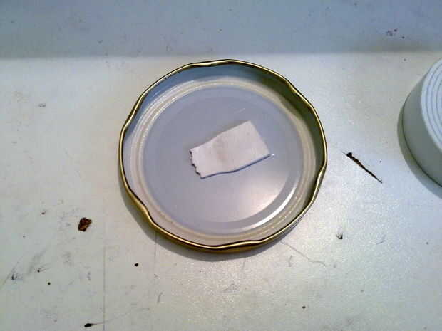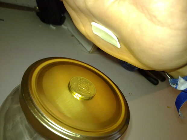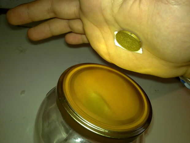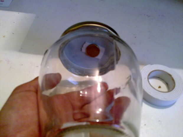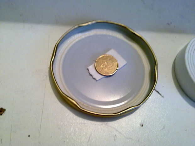 Coloque la moneda en la cinta adhesiva de doble cara.