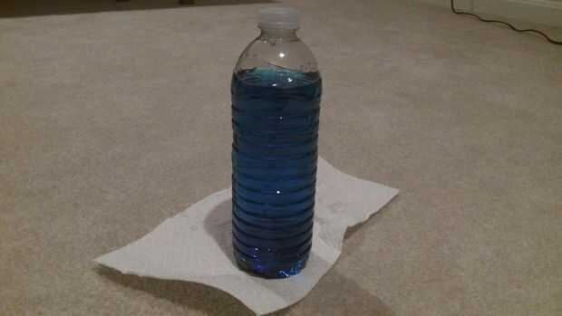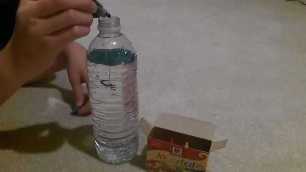 Agite o mezcle el agua en la jarra o botella a la extensiones del colorante del alimento.