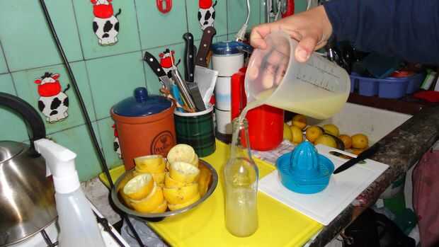 A medida vamos exprimiendo los limones vamos pasando por el colador y los recipientes sea necesario, también vamos tan el jugo en las botellas.