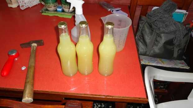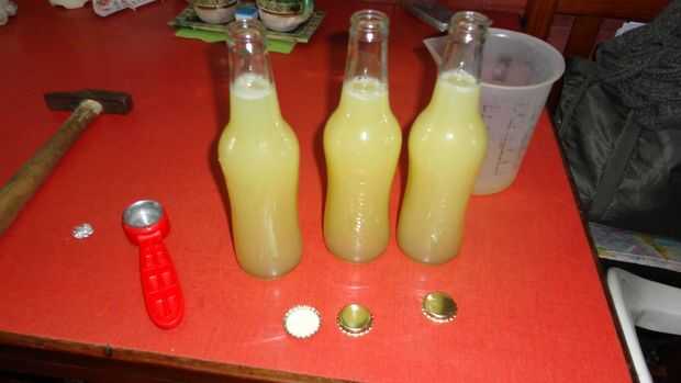 Ponemos en una olla suficiente agua para tapar las botellas y ponemos a calentar, cuando llegue a 90 ° C o 122 ° F colocar las botellas y mantener a esa temperatura por 10 minutos. Esto es suficiente para pasteurizar el contenido.