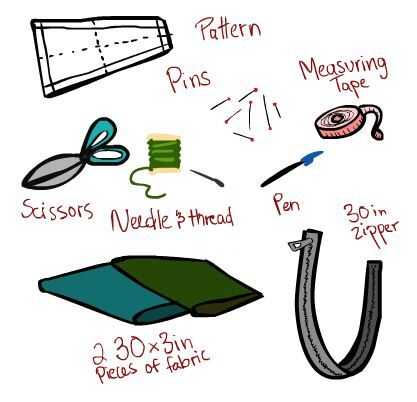 * Nota: Asegúrese de que la cremallera puede ser descomprimida todo el camino abajo en dos mitades (yo usé un cierre de deportes que parece funcionar bien)