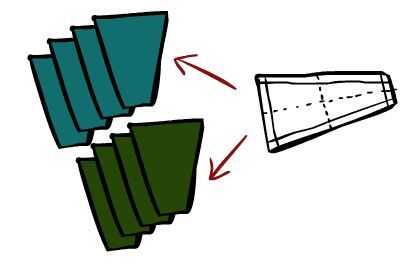 Para comenzar, coloque el patrón sobre la tela (a) y marca el contorno del patrón 4 veces en la tela. No cuenta los bordes sombreados, son las piezas que pliegan para obtener una línea de dobladillo bonito. Cortar todas las 4 piezas. Hacer lo mismo con la tela (b) para que tenga un total de 8 cortes de patrón, 4 de cada color.