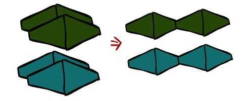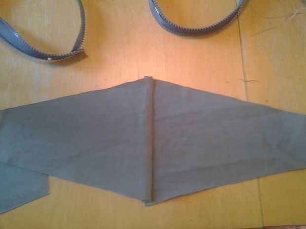 Luego coser los dos extremos pequeño de la tela del mismo color para que usted obtenga dos piezas que parecen el diagrama.