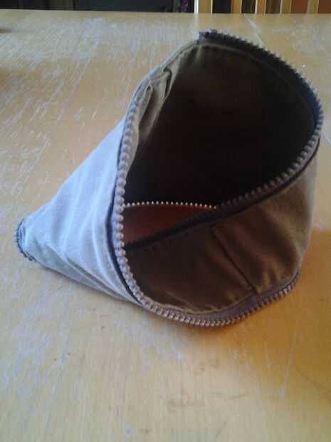 Ahora tenemos que prender a la tela en las costuras de la cremallera. Para ello, primero encuentra una de las costuras largas y plegar el borde de un centímetro. Esta parte central debe ser justo en el centro (1.5 en) del 3 en brecha del giro de cremallera. Poner ambos lados de la cremallera a ambos lados de la tela (Asegúrese de doblar un centímetro para un bonito borde) y pin que todo el camino alrededor. Ignorar los bordes un poco puntiagudos, no afecten el modelo final. Esto requiere mucha paciencia, así que Tómese su tiempo y tenga cuidado de no empujar a ti mismo con las clavijas. (Recordar que una banda de mobius tiene sólo un lado, que todo lo que tienes que hacerlo seguir fijando el borde toda la manera alrededor hasta que regreses al principio). Hacer esto para ambos trozos de tela y dos vueltas de cremallera. Al llegar al final, a coser las dos piezas del extremo pequeño juntos para terminar el modelo.