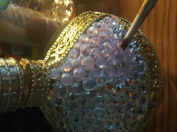 Con ese pincel suelto sólo añadir una capa de mod podge en las joyas en la botella para sellar en y deje secar de 2 a 3 horas.