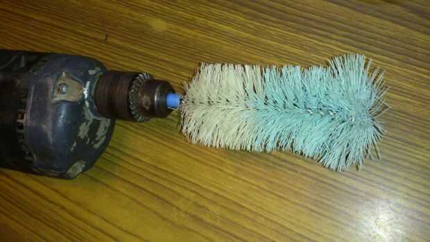 El cepillo es un biberón estándar limpiador. Corte la parte de soporte del pincel utilizando la herramienta de corte de sierra para metales. Entonces usando la llave del pedacito ampliar la tirada (titular) para permitir que los cepillos otro extremo en la pinza y apretar. Hay que ir que tienes tu propia botella limpieza taladro!!! ¡ Disfrute!