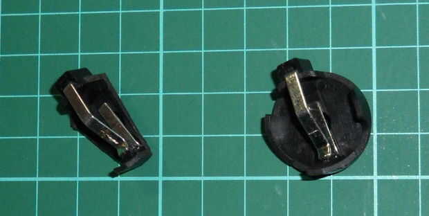 Para permitir mantenimiento/reemplazo de la batería I pared abajo un solo sostenedor de batería CR2032 al mínimo absoluto y modificado para permitir que dos células a instalarse.
