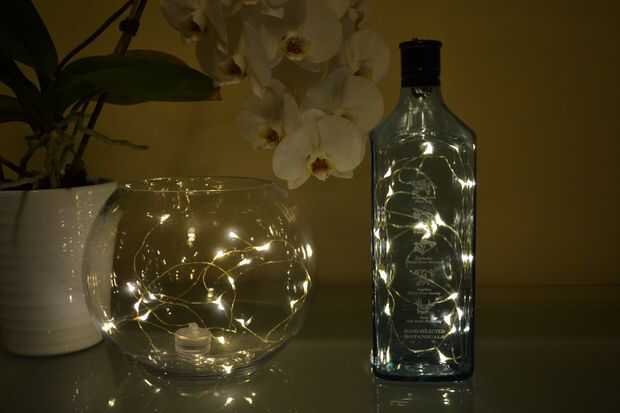 por lo tanto, suena un poco trashy, pero realmente resulta muy hermoso. Todos en todos, 2.50 para luces, 1.00 para las suspensiones de ornamento y 1.00 para las uñas, además de por la cerveza (mi novio donó más de él!)Todo lo que necesitas es:-Filame