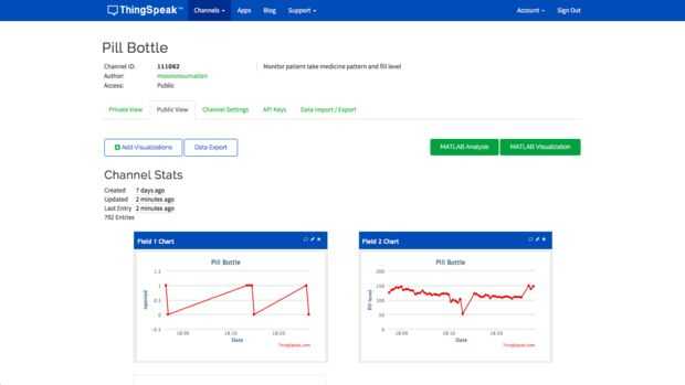Usted puede ir mi canal ThinkSpeak para ver el estado de tiempo real de la botella. (Si es se volvió en el poder)