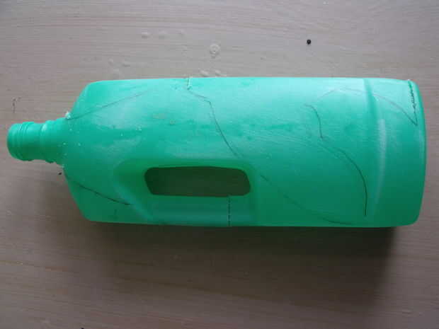 Busque una botella más o menos similar a la de la foto. Dibuja líneas como se muestra.