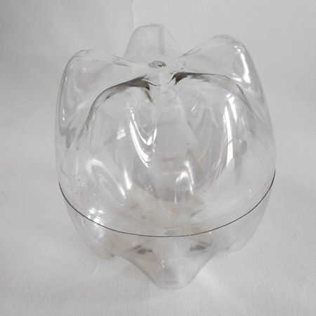 La parte superior la mitad del contenedor se corta 20mm por encima de la línea de costura de la parte inferior.