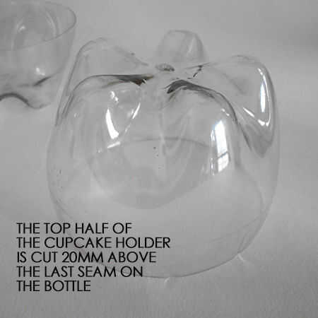 Para cada contenedor cupcake necesita 2 botellas de plástico.