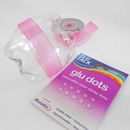 Para asegurarse de que el envase es seguro, utilice puntos de pegamento para asegurar la cinta bastante a lo largo de la unión entre las dos secciones.