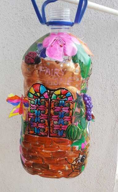 Si la botella no tiene una suspensión que podría simplemente agujeros y pasar un alambre o hilo. Mina fue hecho específicamente para el área de patio de los niños, por lo tanto me ha gustado trabajar sobre un tema de hadas!!