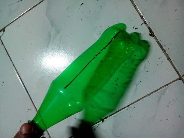 Paso 9: Hacer marca en la botella y cortar la parte inferior de la botella